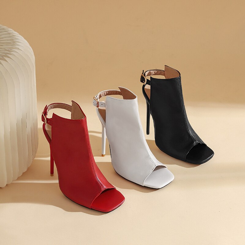 Color: White black red high heels for women